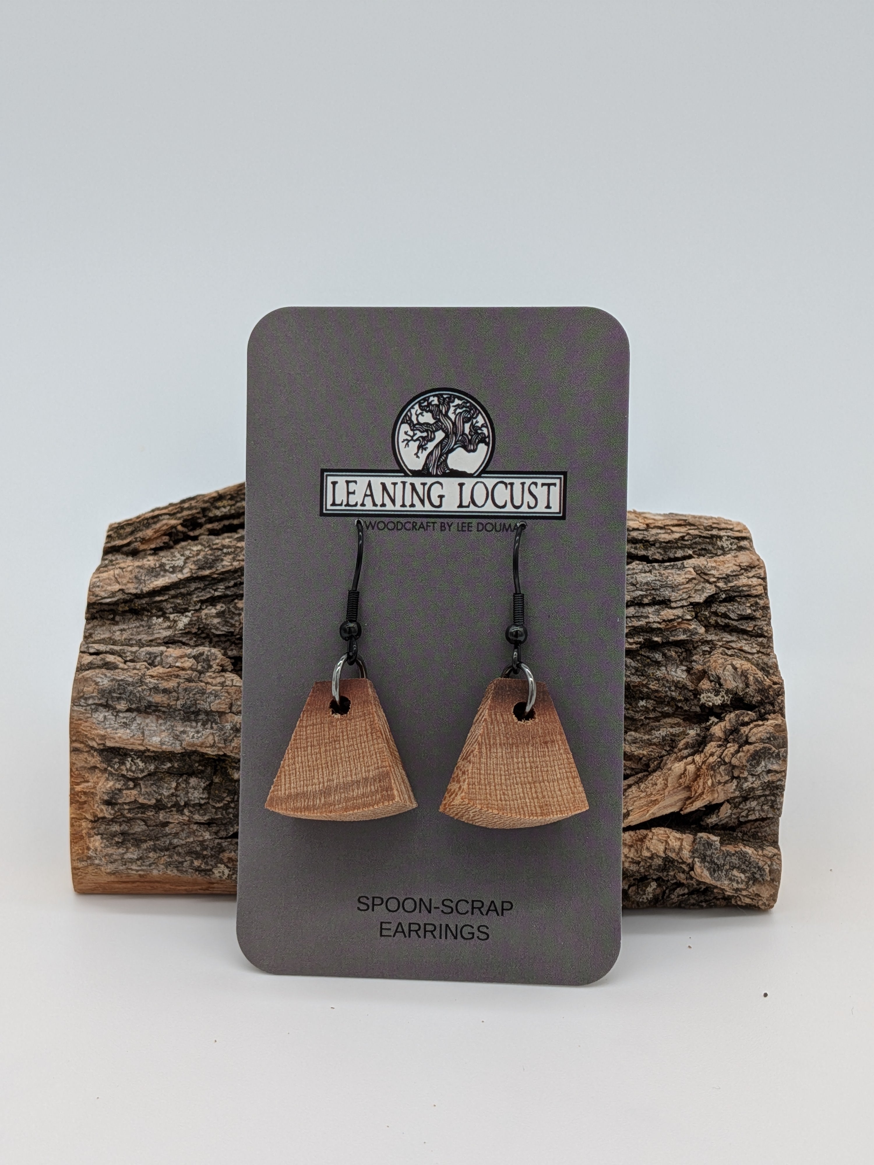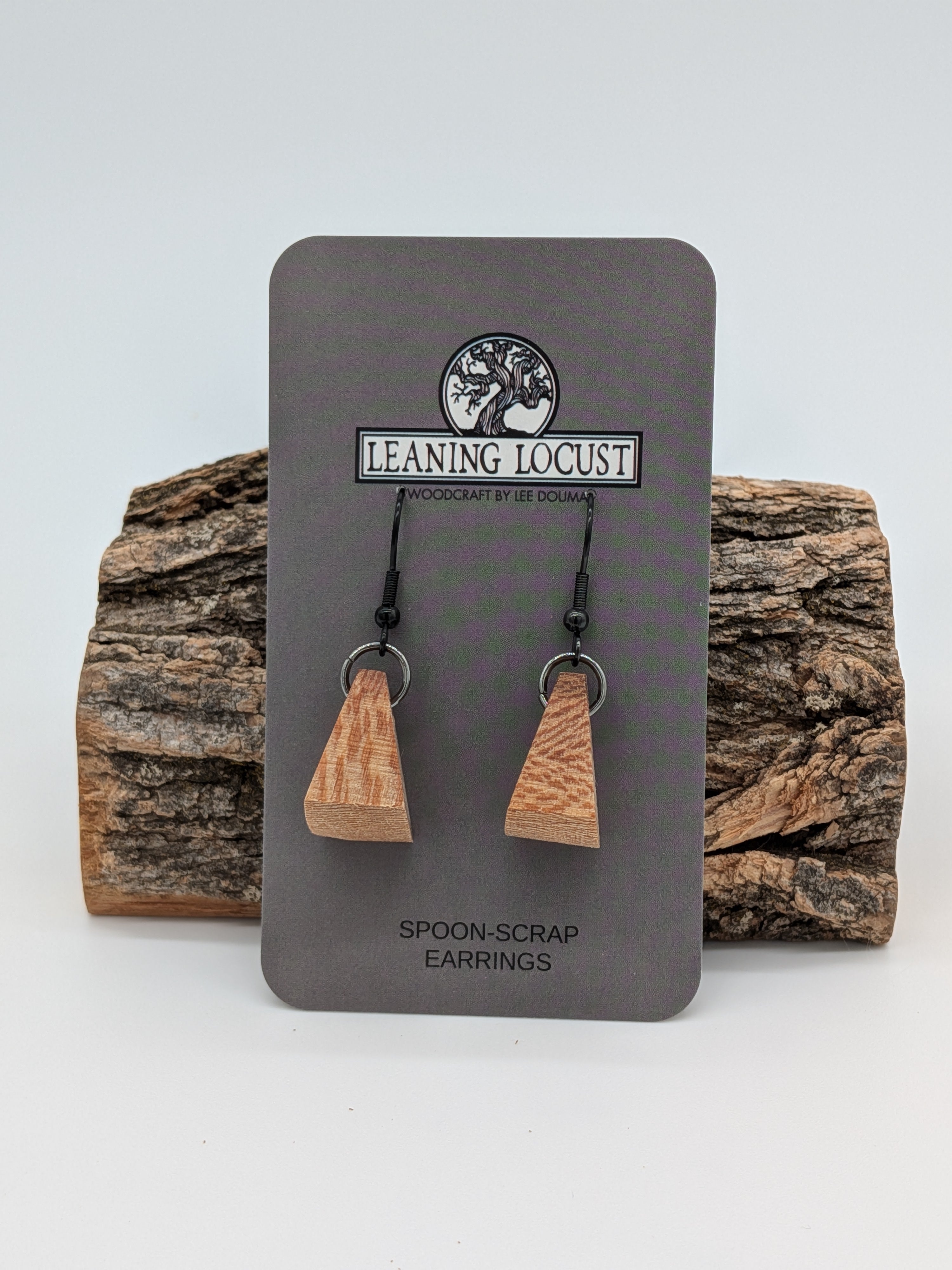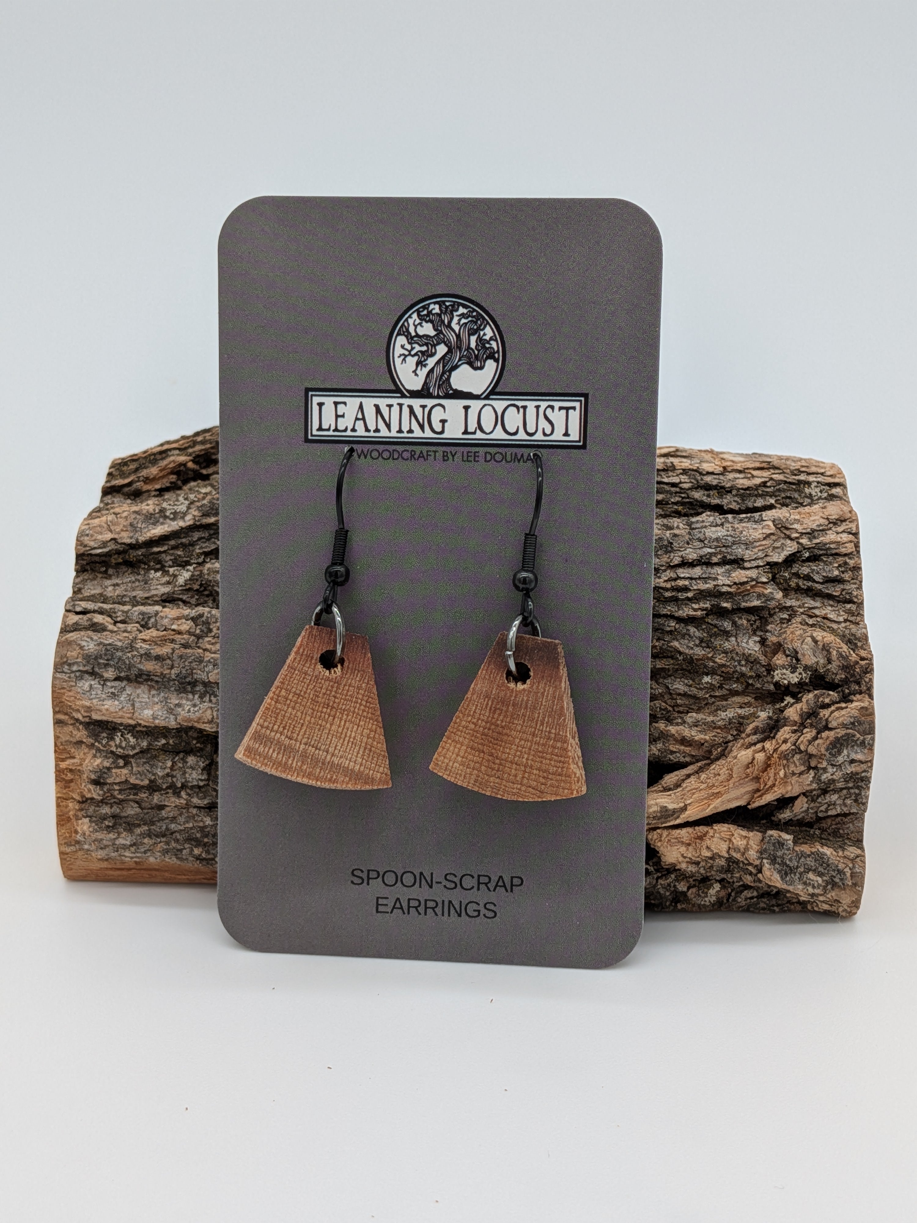 These “spoon-scrap earrings” were made from pieces of wood that were beautiful but not strong enough to become a utensil. This particular wood came from the woods on a friends' farm about 10 minutes from our house.